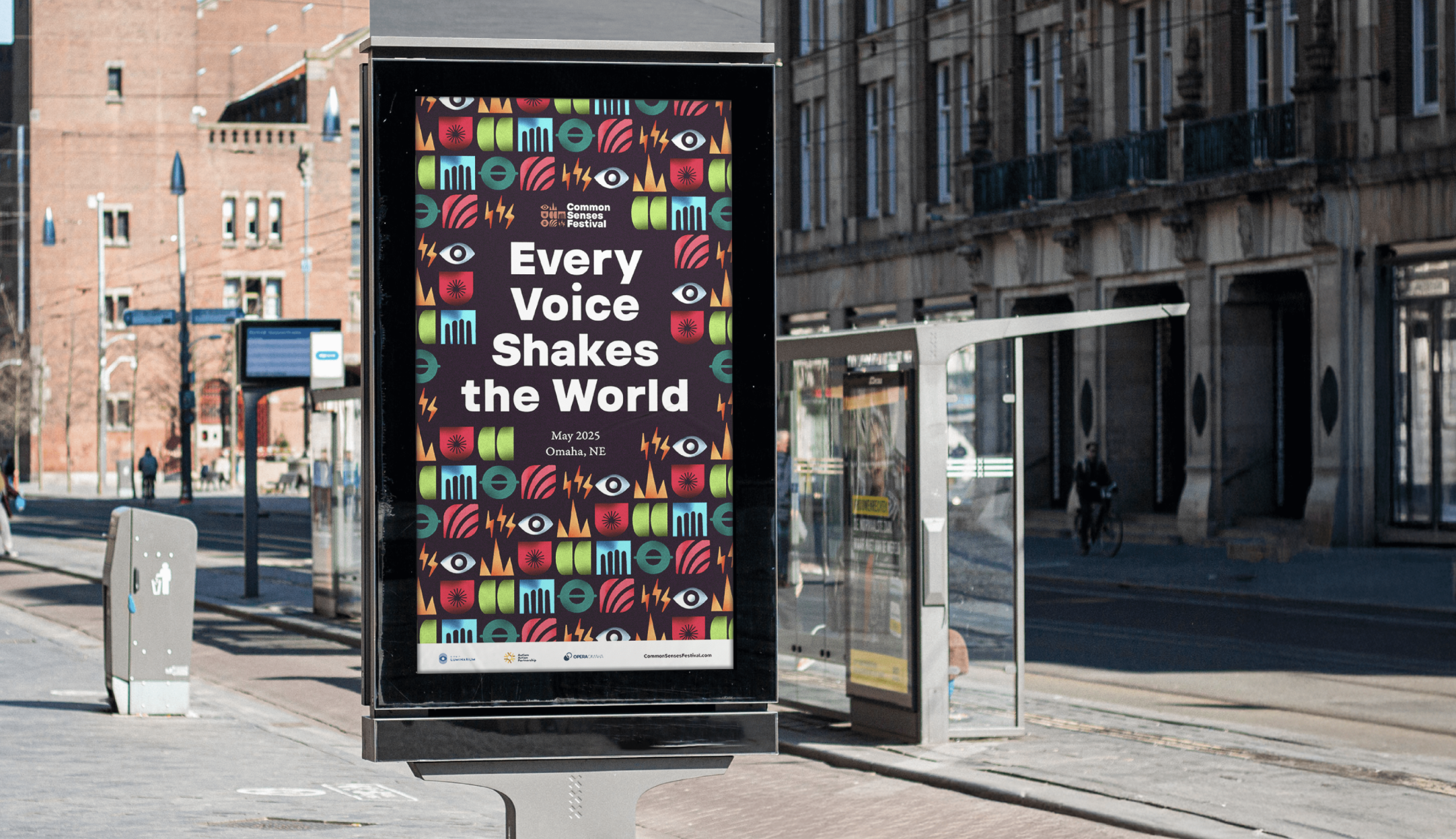 As lead designer on the Common Senses account at Cause Lab, I developed the festival’s visual system and designed the full suite of print, digital, and environmental materials. My work included key art, programs, posters, ads, social and motion assets, fundraising decks, wayfinding, projections, and merchandise. I also supported on-site production in Omaha, collaborating closely with partners to ensure accessibility and inclusion were reflected across every touchpoint.