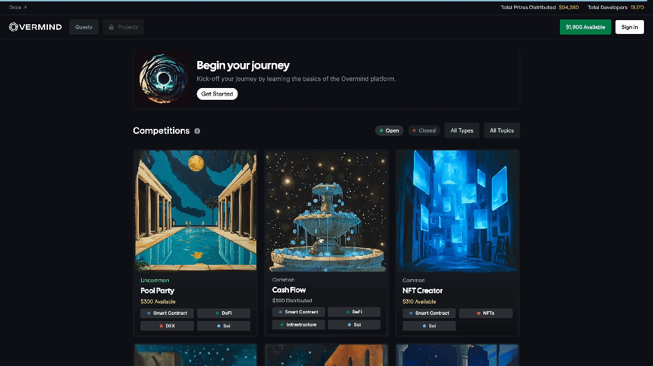 Overmind is a platform where web3 developers compete in coding puzzles to earn prizes and reputation in the form of credentials. Puzzles are educational as much as they are competitive and challenge the solver to think creatively. By conquering challenges, solvers build a verifiable track record of their mastery.