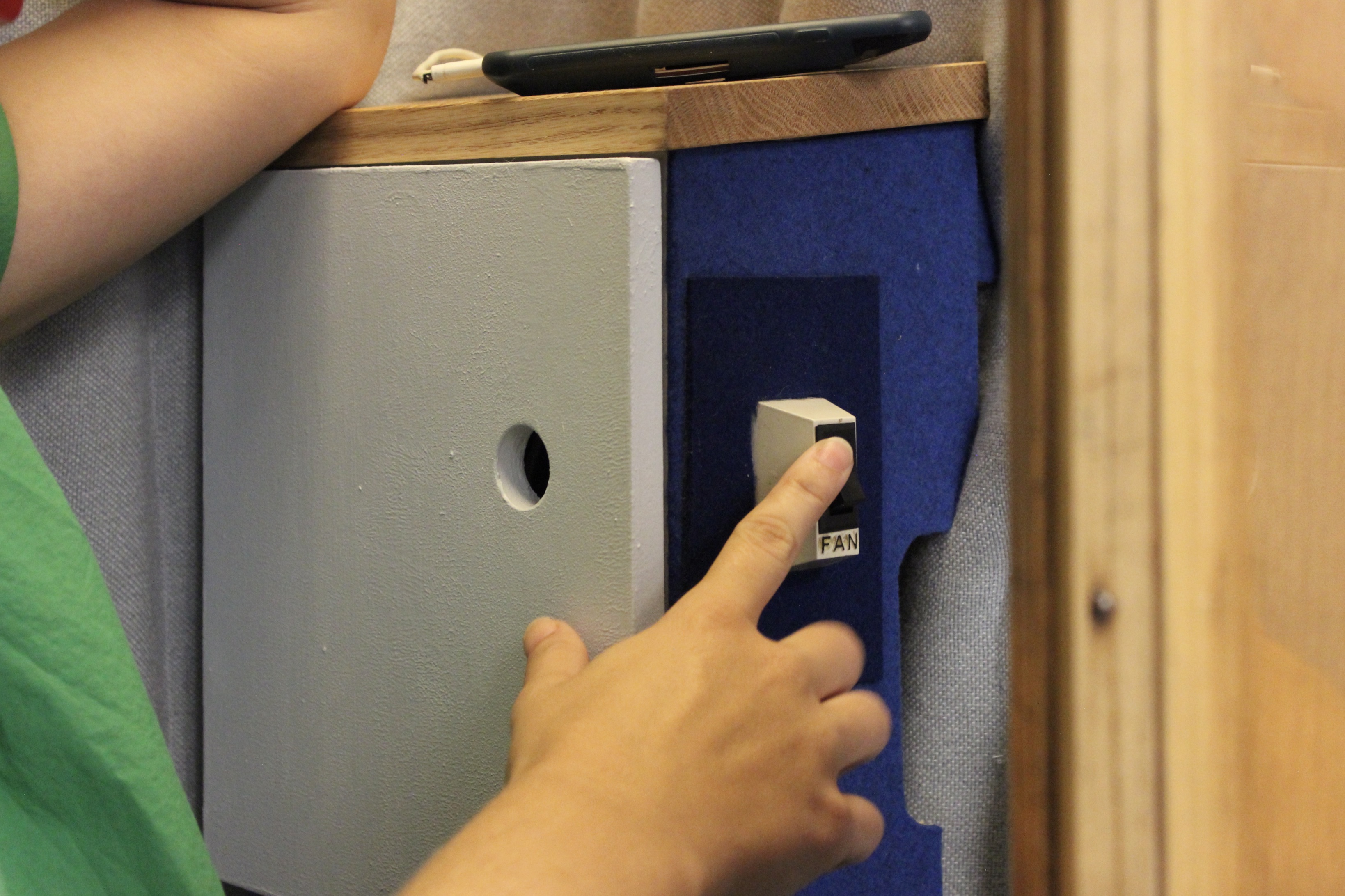 Project Management | Interior Design | CarpentryAs a part of a collaboration between the UN DPPA Innovation Cell and the Rhode Island School of Design, we were tasked with redesigning the interiors of four Phone Booths that have been in the UN Secretariat Building since the 1950s. The brief was open-ended and only required that the exteriors remain the same and that each booth has some interactive component.