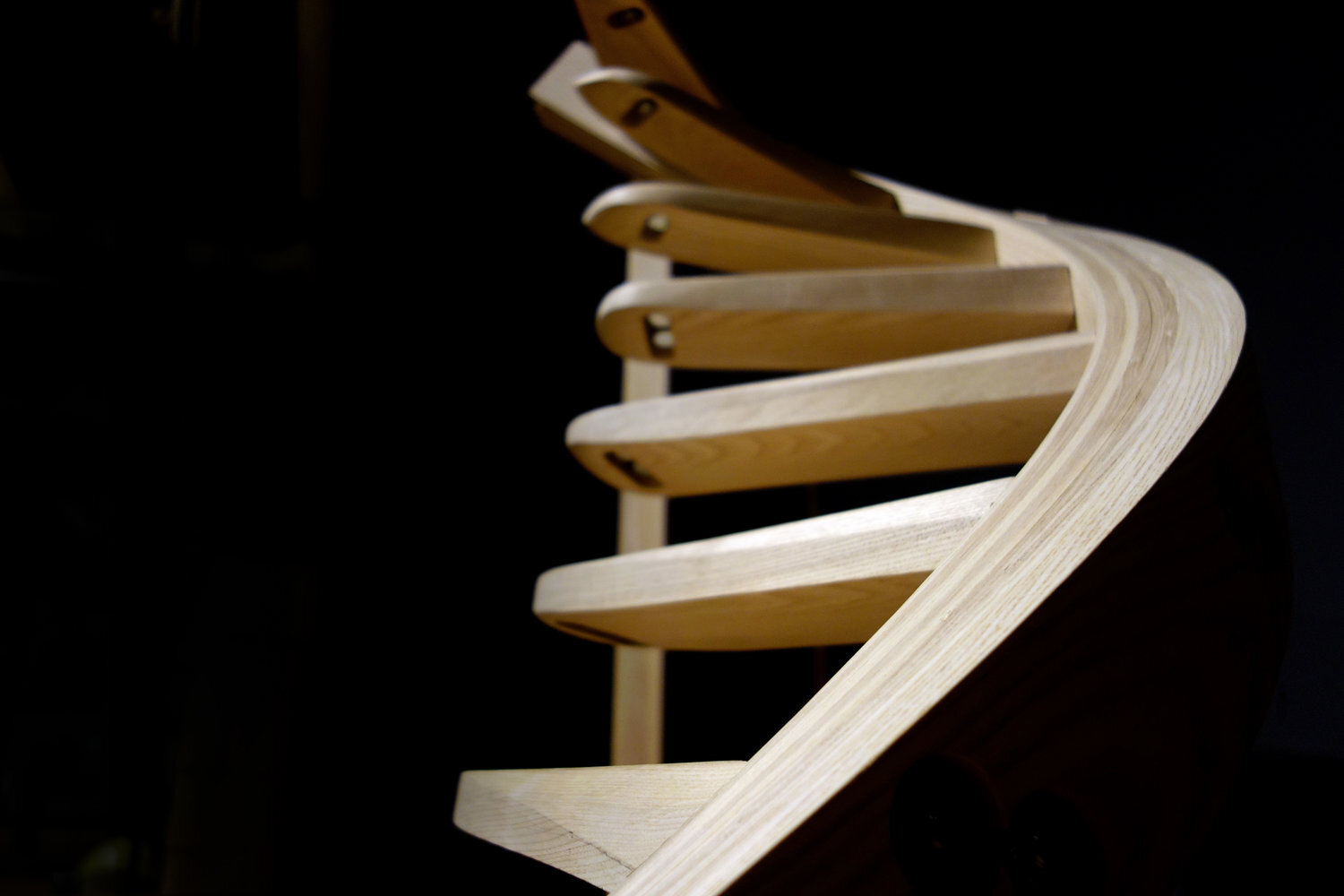 The main challenges that I set myself, construction-wise, were cantilevering the steps and maintaining the overall physical balance of the piece. Form and function inevitably informed each other, for the piece’s ability to support human weight dictated many of the design decisions that were made along the way.